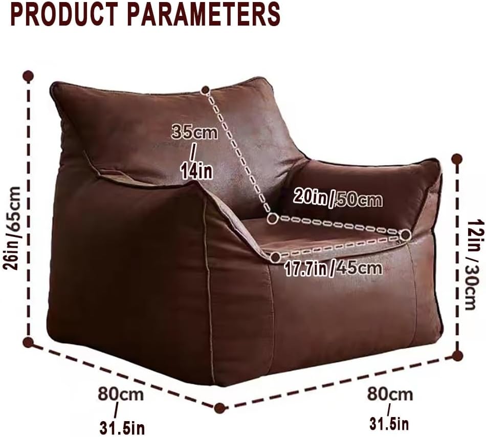 Bean Bag Chair Bean Bag Cover Luxury Single Lazy Sofa Cover PU Faux Suede Leather Bean Bag Pouf Chair for Bedroom Living Room Garden, Without Filling Bean Bag Cover